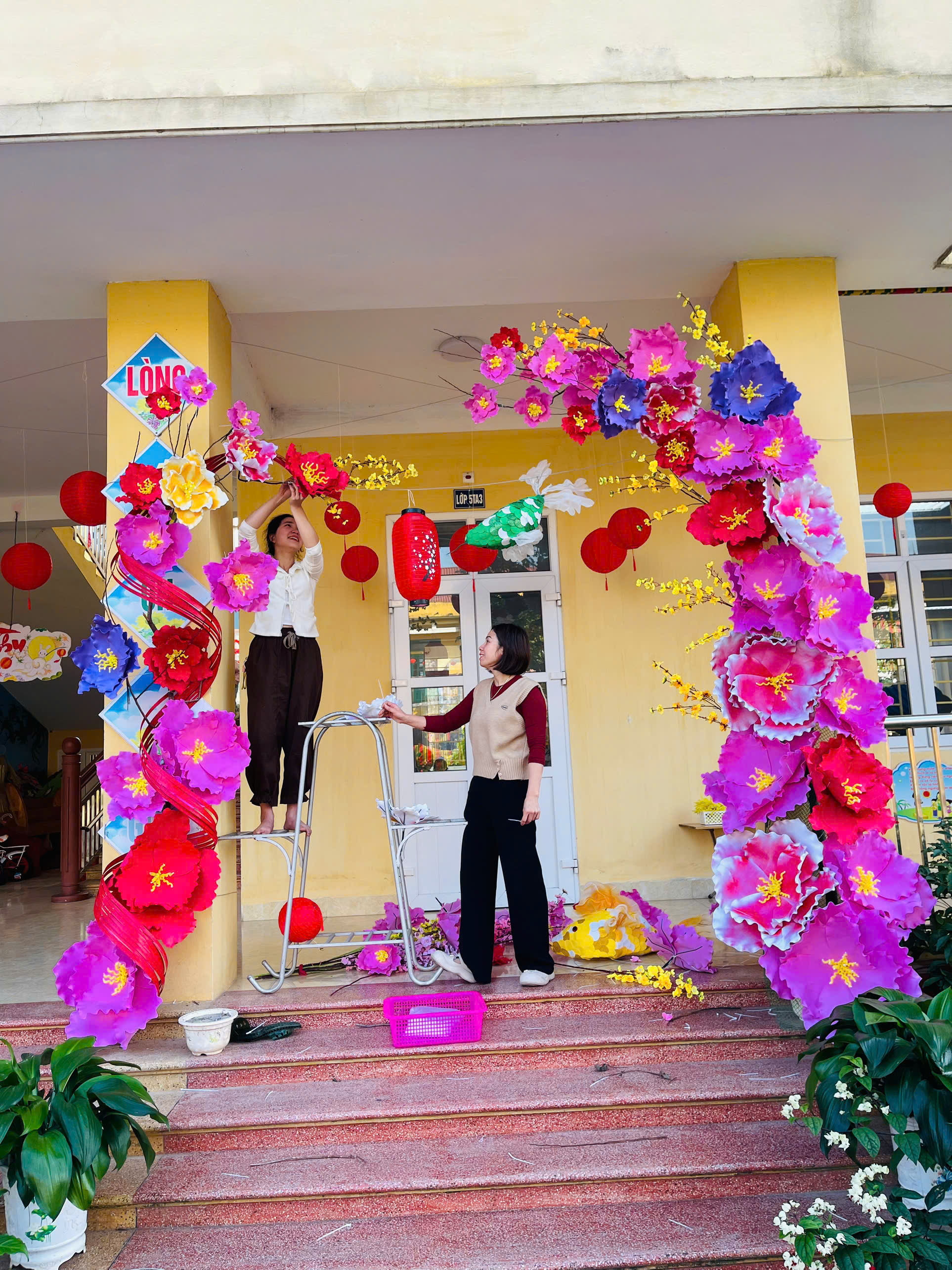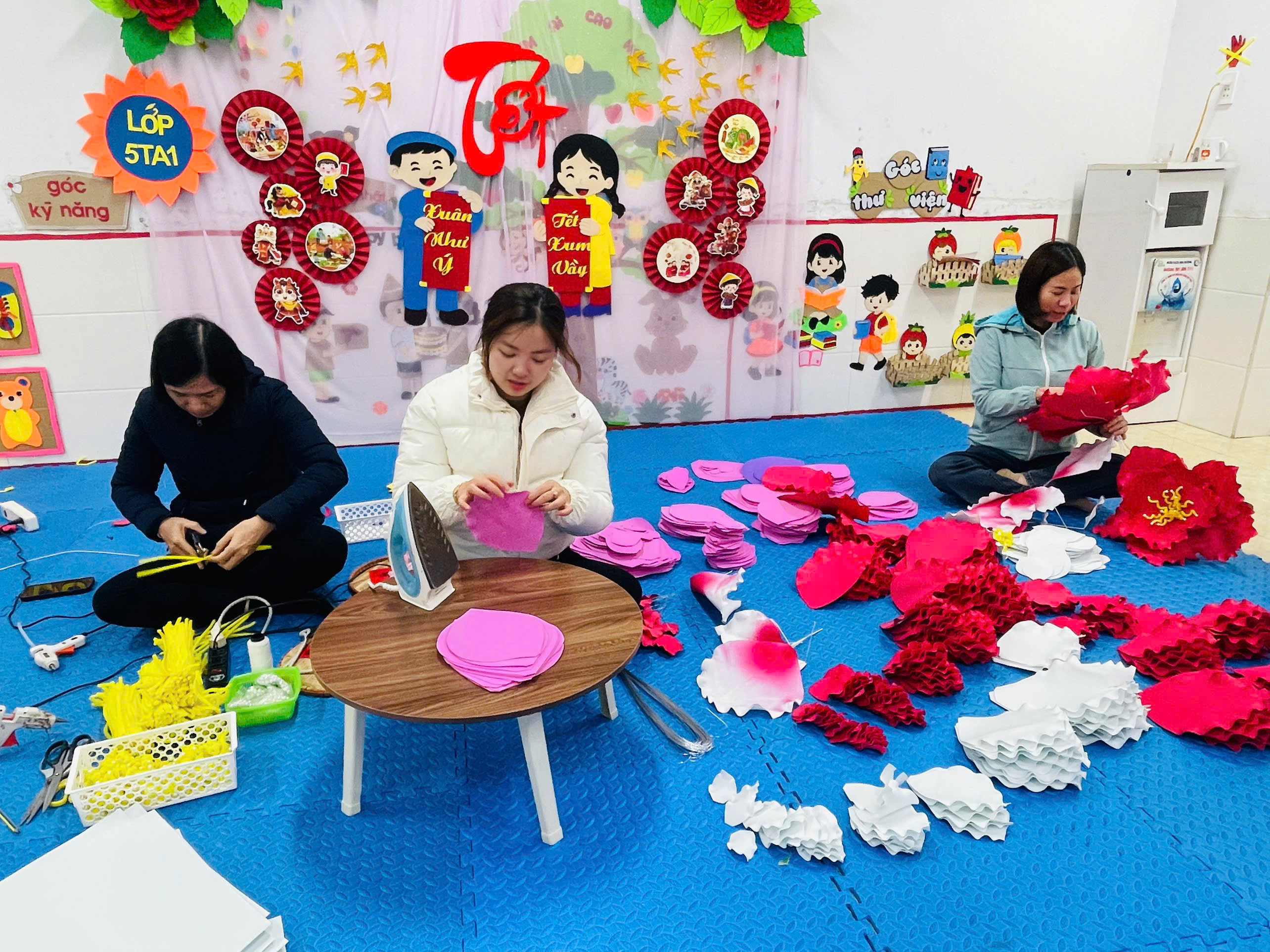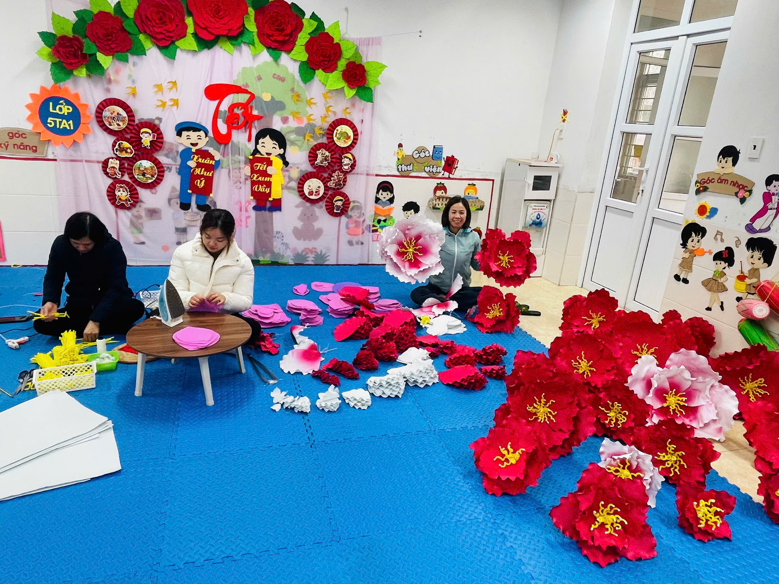 Để chuẩn bị trang trí cho chủ đề “Bé vui đón Tết và Mùa xuân Bính Ngọ” Với lòng nhiệt tình và đôi bàn tay khéo léo của các cô giáo trường MN Xuân Bắc không quản ngại thời gian để có một môi trường giáo dục xanh – sạch – đẹp, sinh động và mang đậm không khí Tết cổ truyền. Mỗi góc lớp, hành lang, sân trường đều được chăm chút tỉ mỉ, thể hiện sự sáng tạo và tình yêu thương dành cho các bé, góp phần tạo nên không gian vui tươi, ấm áp để trẻ hào hứng tham gia các hoạt động trải nghiệm và đón chào mùa xuân mới tràn đầy niềm vui.