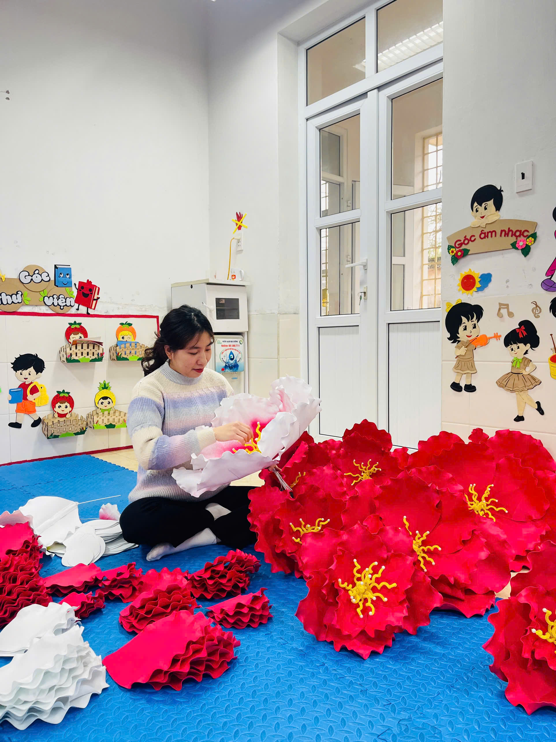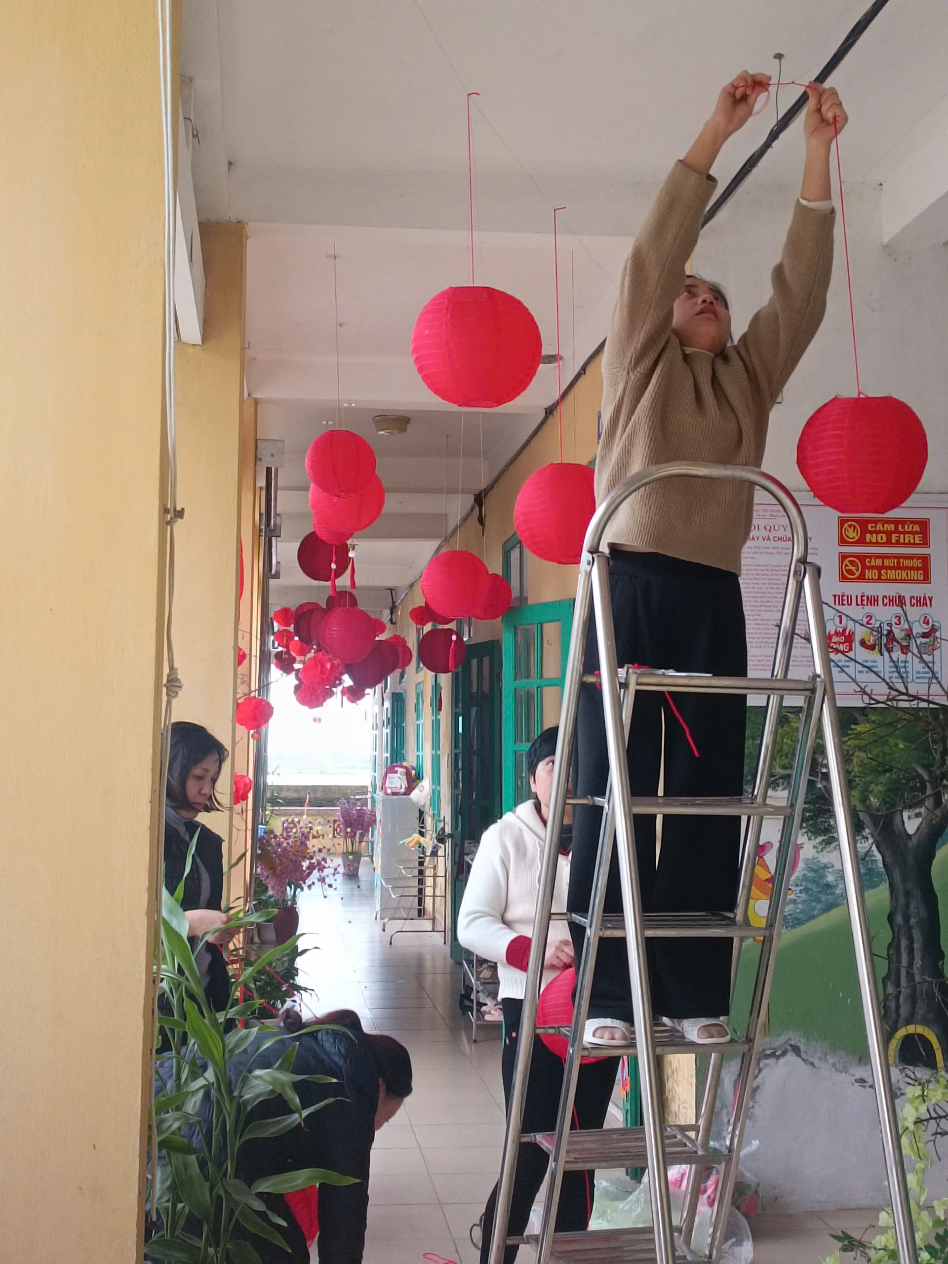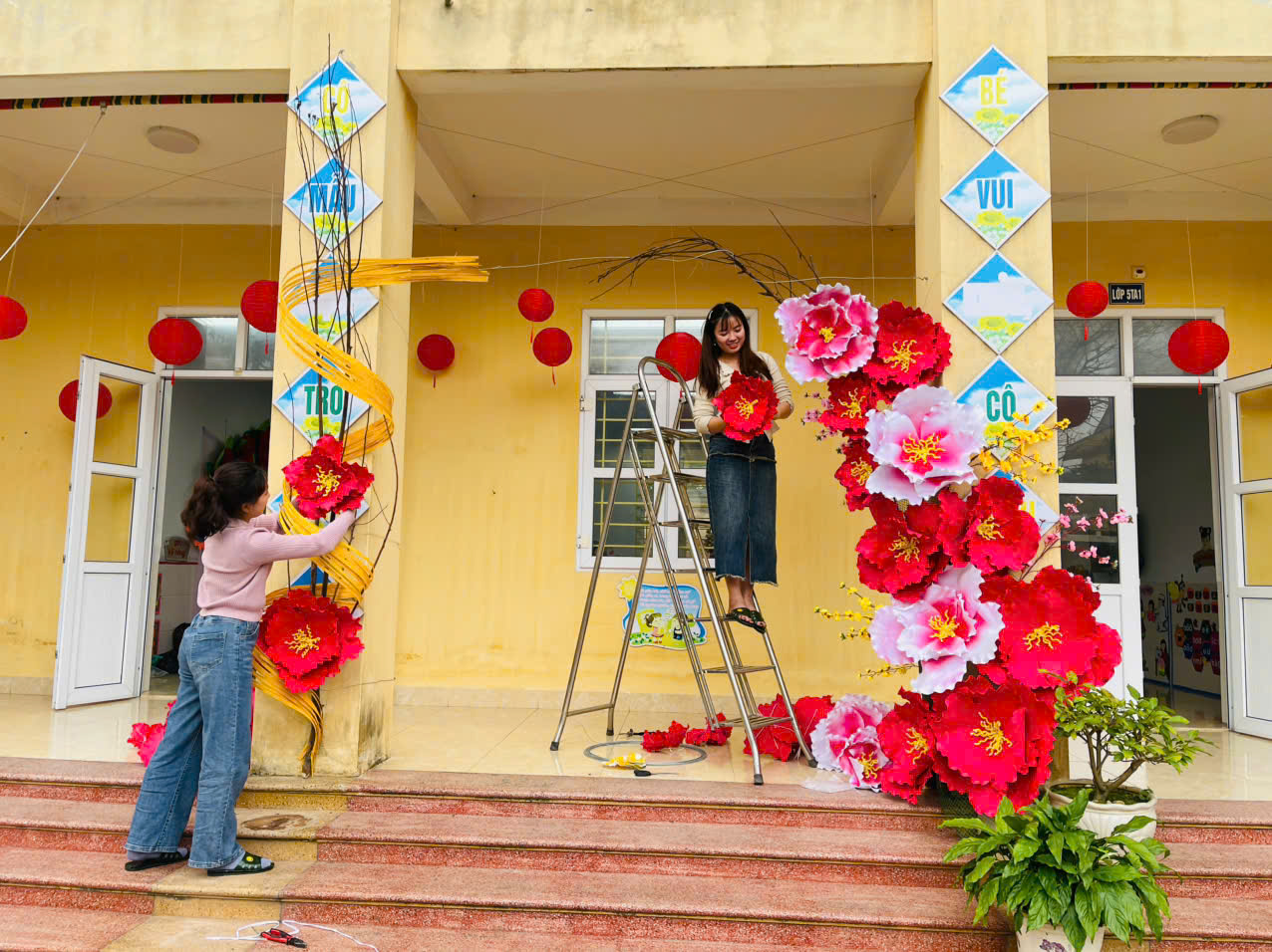Để chuẩn bị trang trí cho chủ đề “Bé vui đón Tết và Mùa xuân Bính Ngọ” Với lòng nhiệt tình và đôi bàn tay khéo léo của các cô giáo trường MN Xuân Bắc không quản ngại thời gian để có một môi trường giáo dục xanh – sạch – đẹp, sinh động và mang đậm không khí Tết cổ truyền. Mỗi góc lớp, hành lang, sân trường đều được chăm chút tỉ mỉ, thể hiện sự sáng tạo và tình yêu thương dành cho các bé, góp phần tạo nên không gian vui tươi, ấm áp để trẻ hào hứng tham gia các hoạt động trải nghiệm và đón chào mùa xuân mới tràn đầy niềm vui.