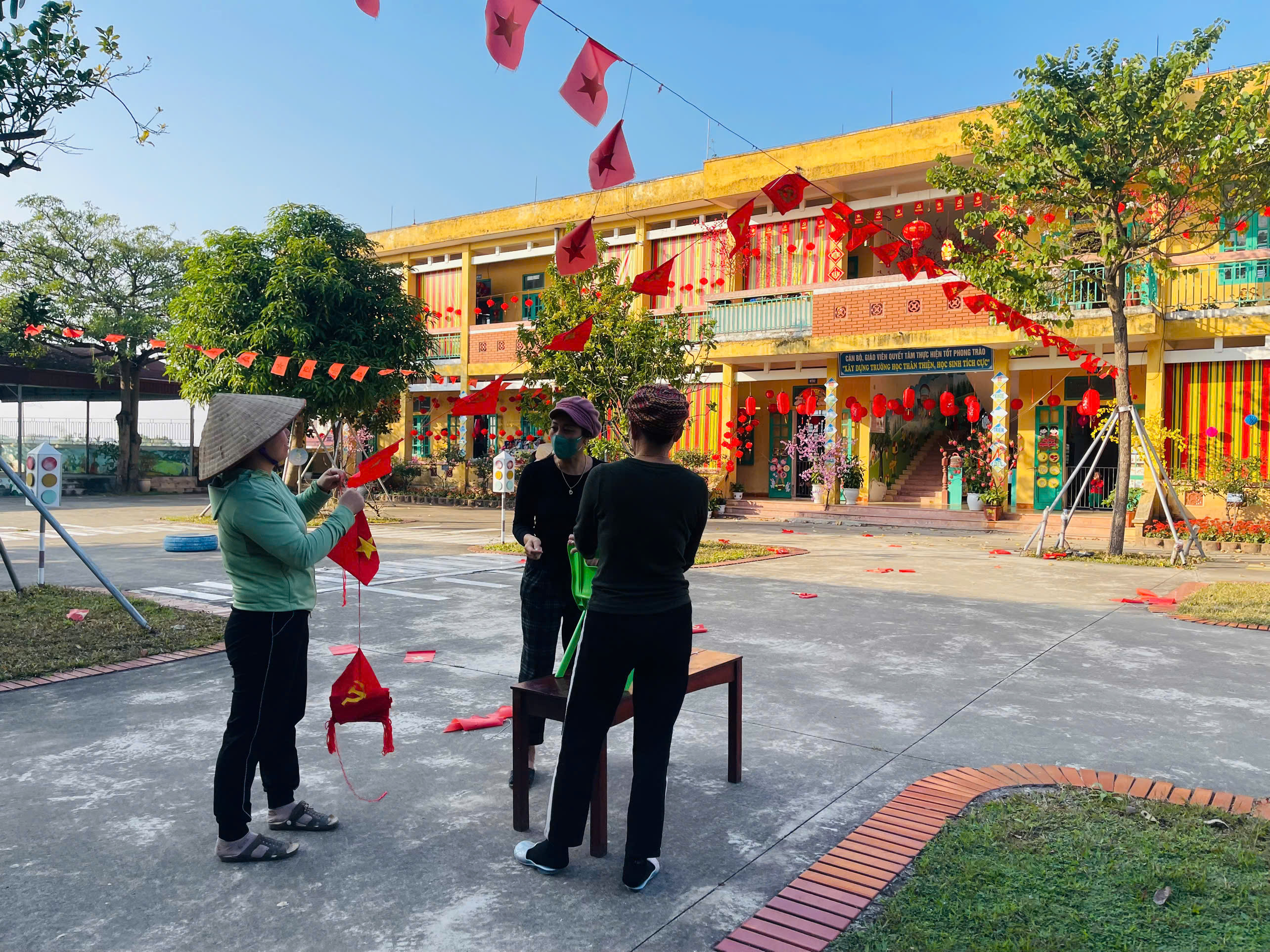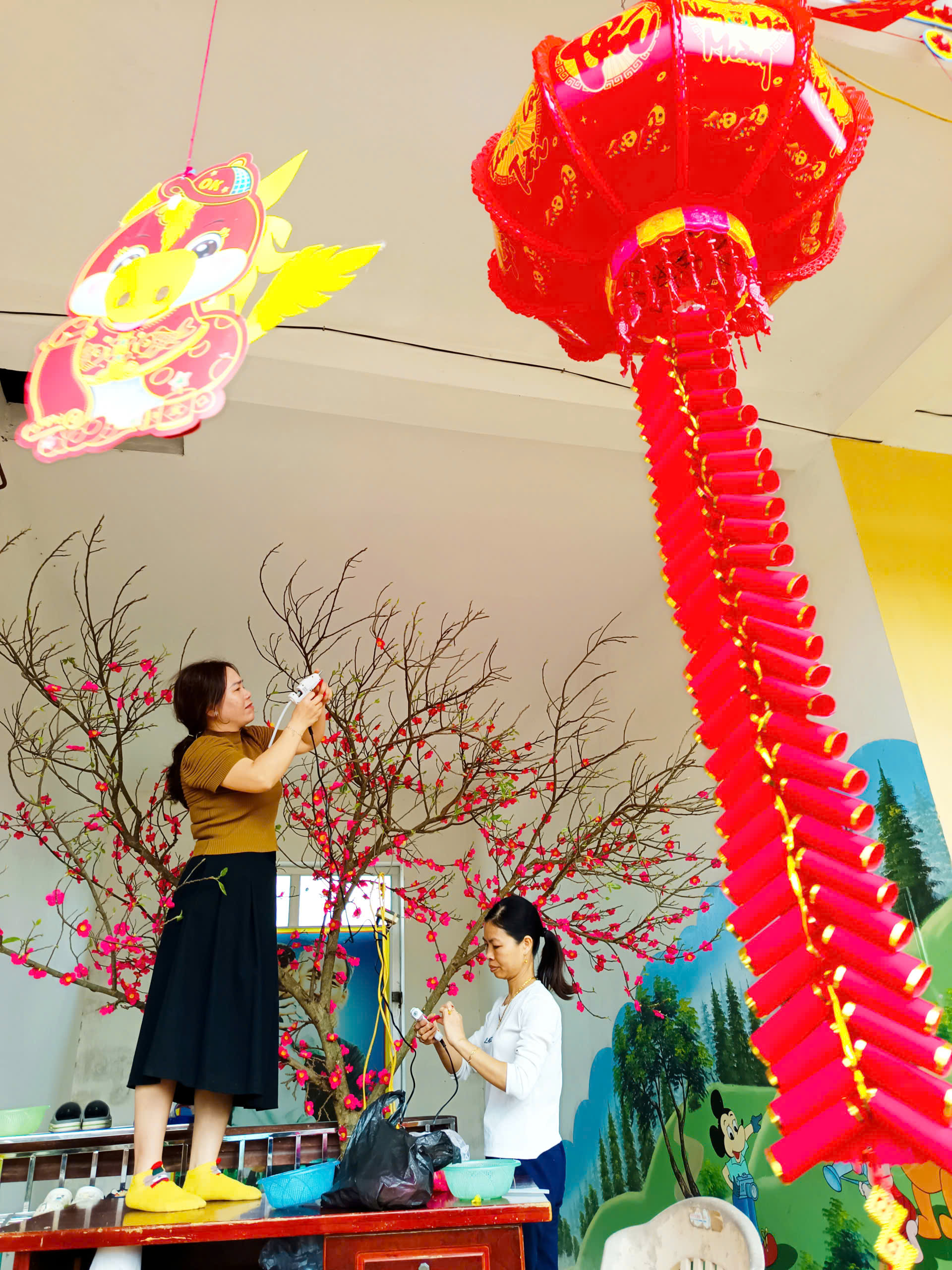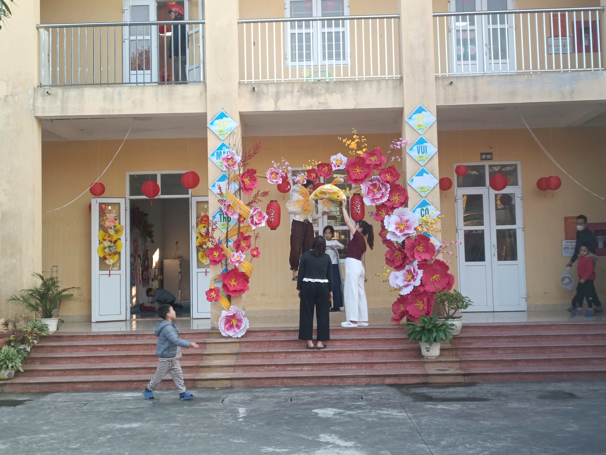 Công tác chuẩn bị chủ đề ” Bé vui đón tết và mùa xuân Bính Ngọ” Trường MN Xuân Bắc, xã Xuân Hưng