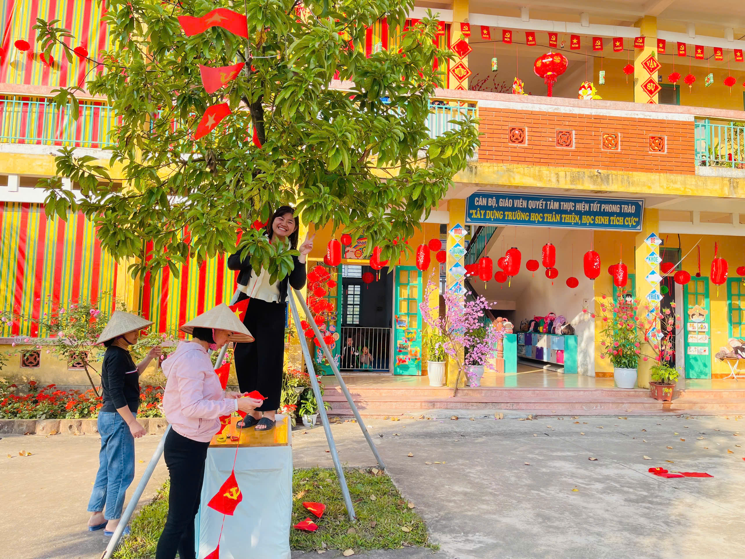 Dưới đây là một số hình ảnh cho công tác trang trí chuẩn bị của nhà trường: